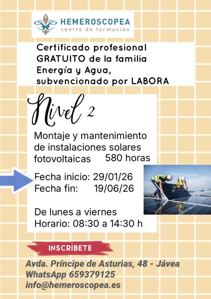 CURSO MONTAJE Y MANTENIMIENTO DE INSTALACIONES SOLARES FOTOVOLTAICAS 22 diciembre, 2025 por Hemeroscopea
